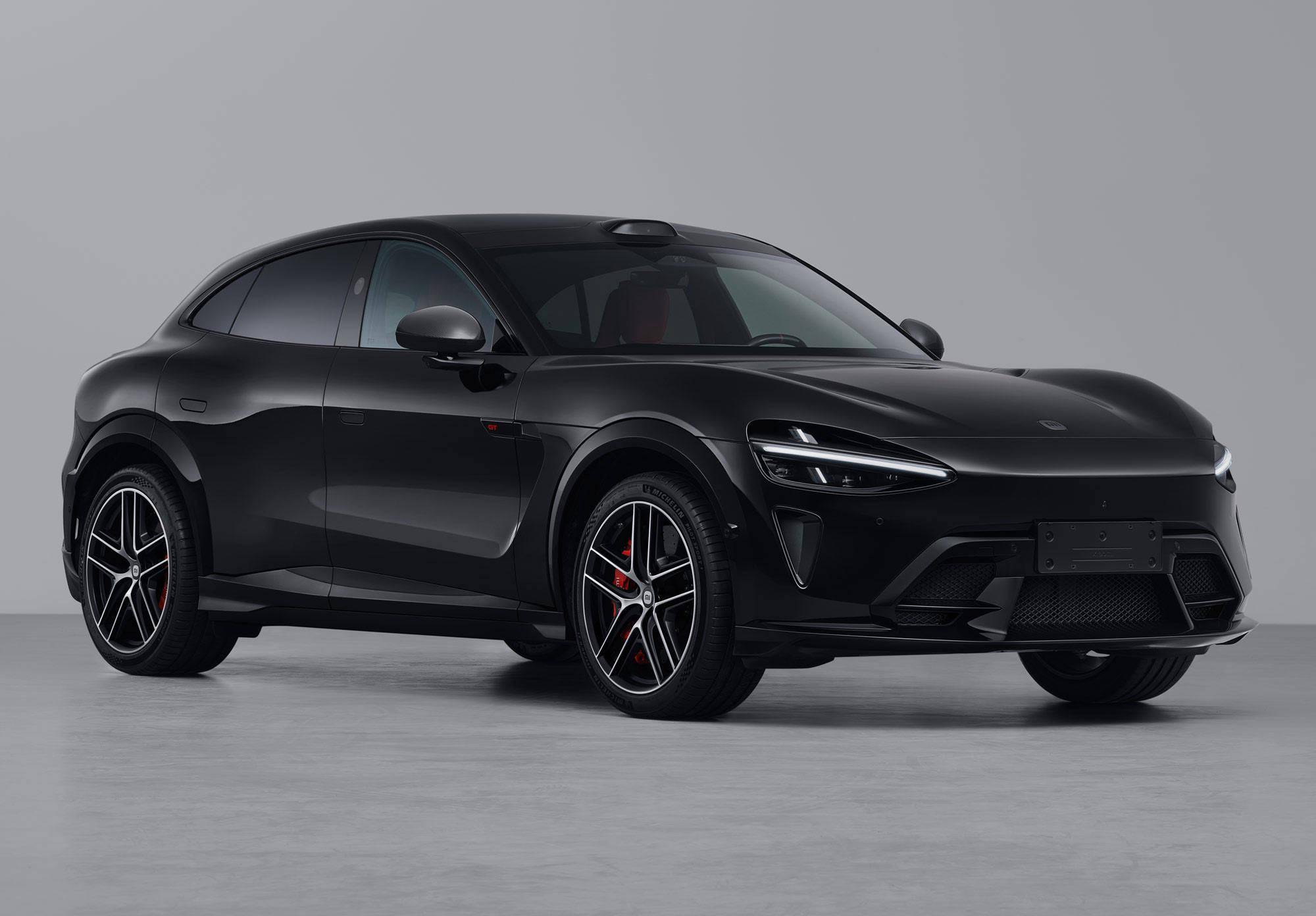 根据公示信息,小米YU7 GT采用全车身黑化设计语言,整体造型兼具未来感与运动气息。车辆尺寸方面,长宽高分别为5015mm、2007mm、1597mm,轴距达3000mm,属于中大型SUV范畴。其整备质量为2460kg,前后轮胎规格分别为265/40R21与295/35R21,宽胎设计暗示了强大的抓地性能。