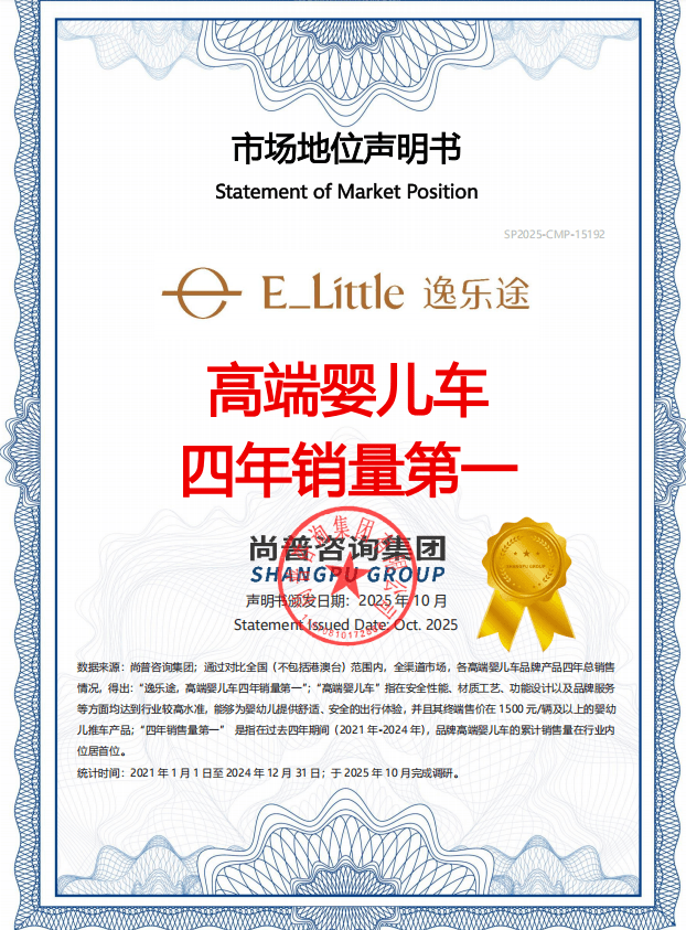 国内知名咨询机构尚普咨询近日发布权威认证,经对全国全渠道市场的深度调研与数据核验,婴童出行品牌逸乐途(E_Little)凭借2021至2024年高端婴儿车累计销量登顶行业榜首,正式获得“高端婴儿车四年销量第一”的市场地位声明。这一认证不仅标志着品牌在高端婴童出行领域的领先地位,更反映出中国家庭对产品品质与品牌价值的双重认可,为行业树立了品质与销量并重的标杆典范。