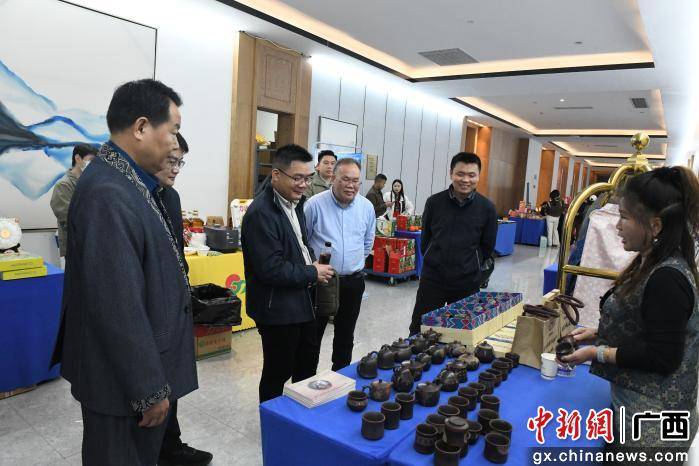 展销区成为活动亮点之一,六堡茶、酵素饮料、桑果酒等“桂字号”农产品与万国、清泉等老字号品牌同台亮相,钦州坭兴陶、北海南珠等非遗工艺品则展现了广西文化底蕴。参会企业通过场景化展示与互动体验,直观呈现数智化转型成果,为传统产业与现代消费市场的对接提供了新思路。