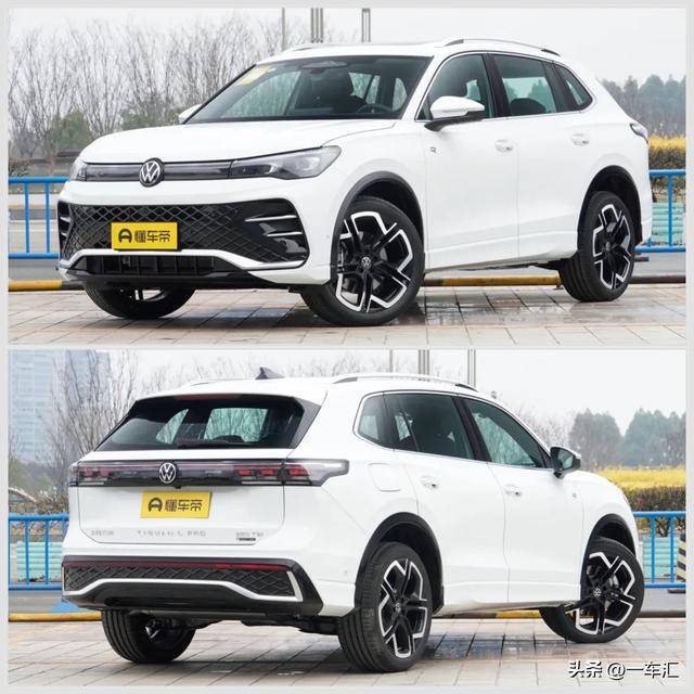 智尊版在外观设计上延续了途观家族的硬朗风格,但通过细节升级强化运动属性。专属R-Line运动套件覆盖前脸、侧裙及后包围,新增的镭射白车身颜色与可选装的酷黑套件(包含高光黑化车顶、轮毂及后视镜)形成鲜明对比。前脸采用多边形进气格栅与IQ.Light矩阵式大灯的贯穿式设计,下方C形装饰件与2.56万像素的智慧投影大灯相呼应,后者支持车道照明、窄路示宽及动态避眩功能。车身尺寸保持4735×1859×1682毫米的中型SUV主流水平,20英寸轮毂与255/40R20轮胎组合进一步凸显其旗舰定位。