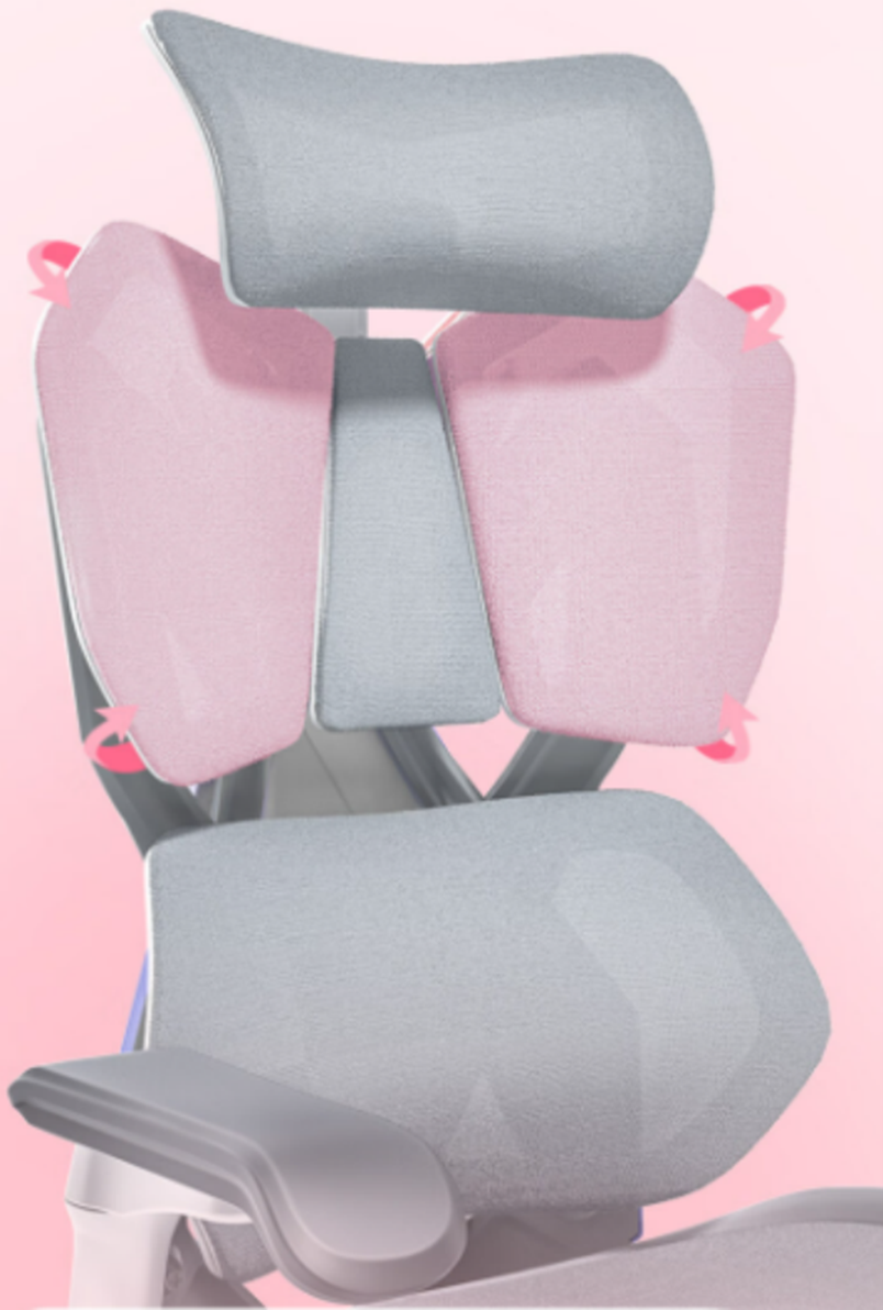 过往电竞椅的腰枕硬、偏高、位置固定,小个子女生往往被顶得不舒服,只能把腰枕拆掉。独角兽用“环抱式托举”取代“错误顶压”,通过双C曲线从横向包裹腰肌、竖向托住骶骨,让腰不是被要求挺直,而是被结构托稳。