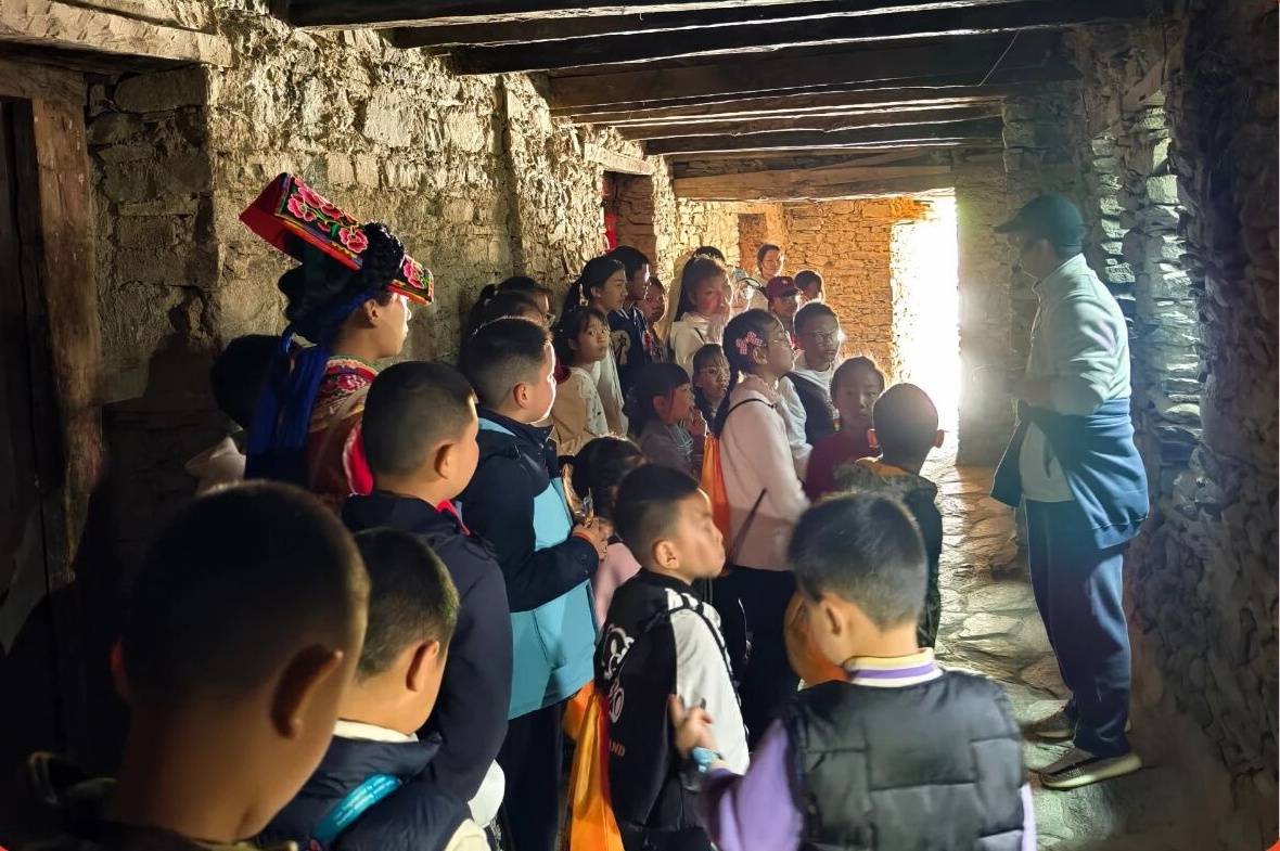 本次研学活动充分利用桃坪羌寨“世界最佳旅游乡村”的本地资源,创新打造跨学科实践课堂。在非遗文化研讨环节,孩子们结合剪纸纹样的对称美学,深入理解数学中的对称原理。这种将历史、科学、数学等知识融入体验环节的教学方式,让孩子们在轻松愉快的氛围中收获知识。活动负责人易表示:“我们希望通过这种沉浸式体验,让孩子们从文化‘旁观者’转变为‘传承者’。”为确保学生安全,活动严格落实三级安全管理体系,配备专业陪护团队与专项保险。